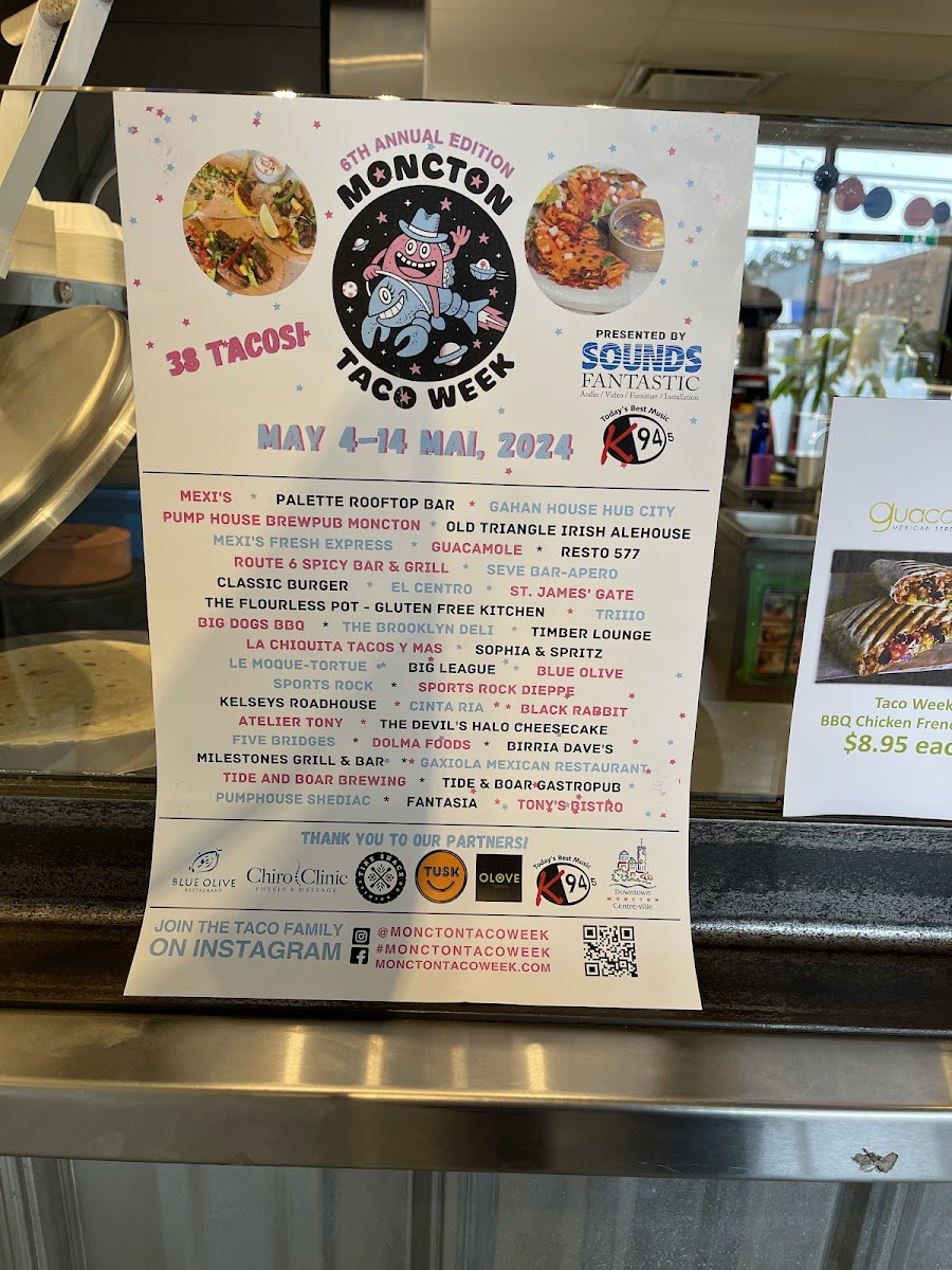 The menu at Guacamole Mexican Street Food in Moncton offers a variety of flavorful and customizable options for every taste. Guests can start with a base such as Ensalada, Burrito, Taco (3), Burrito Bowl, Nacho, or even a Snack Bowl. For a more hearty option, the Chili Con Carne + Chips or Vegan Chili + Chips are great choices. If you're looking for something lighter, the Taco (sold individually) or Chips with a choice of salsa, rice, beans, or sour cream (12oz portions) make for perfect additions. For the little ones, the Kid's Meal - Taco or Kid's Meal - Bowl is sure to please. New on the menu are the French Tacos at $10.95 each, with choices like BBQ Chicken French Taco, Honey Chipotle Beef French Taco, and Veggie Guac Cilantro French Taco-an exciting twist on the classic taco. Drinks range from refreshing Oasis Juice (300ml), Can Pop (355ml), and Montellier (355ml) to the fizzy Bubly and Brisk Ice Tea. Whether you're after a quick snack or a fulfilling meal, Guacamole offers a great variety that’s sure to satisfy any craving.